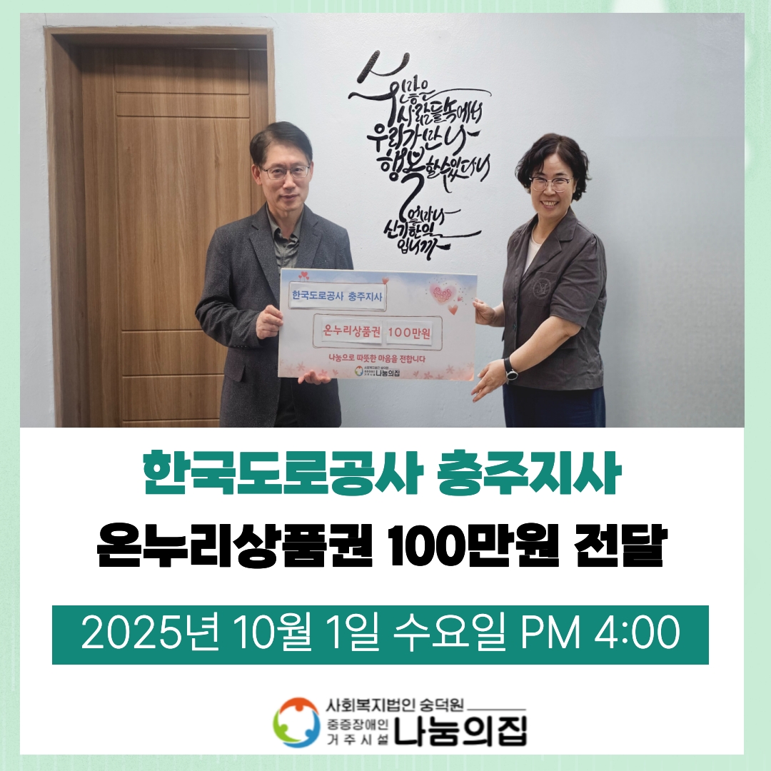 '한국도로공사 충주지사, 나눔의집에 온누리상품권 전달'