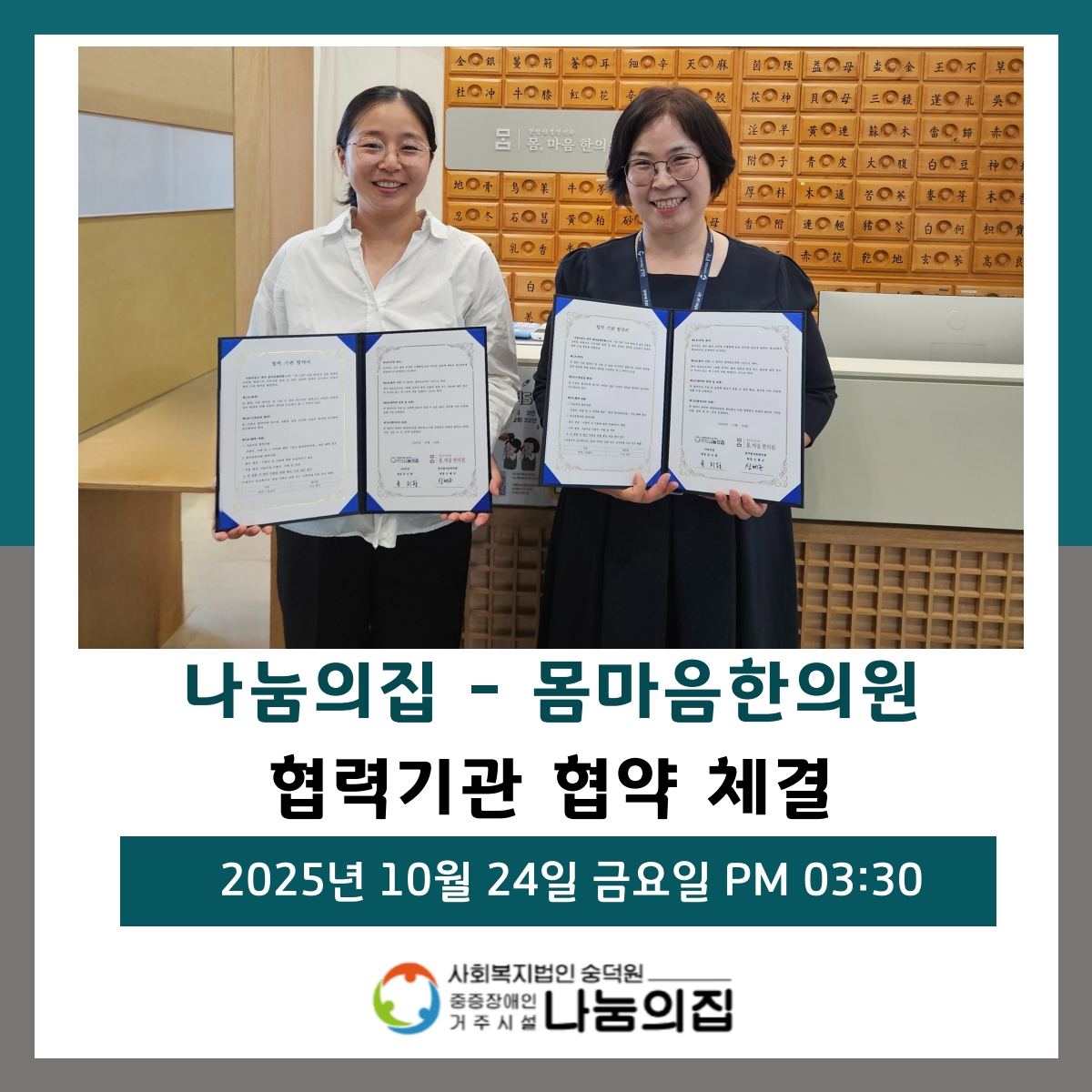나눔의집 - 몸마음한의원 협력기관 협약 체결
